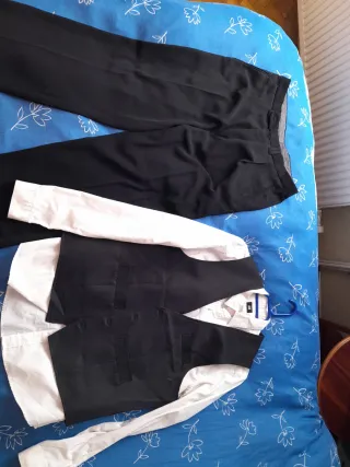 Conjunto de uniforme para camarera/o, compuesto por pantalón, camisa y chaleco. - Pantalón negro (talla M-39cm) - Camisa blanca (talla M ó L) también tengo camisas negras de estás tallas) - Chaleco negro (talla M-L) Regalo de otra camisa blanca con el lote. Ver más artículos en mi perfil es. Un saludo eso eso lo pongo siempre cada vez que pongo una cosa pongo ver más artículos de mi perfil