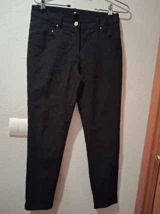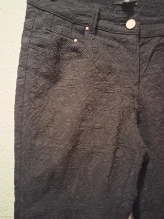 Pantalón de vestir H&M con un diseño bordado. - Color negro. - Tejido con relieve. - Corte moderno.
