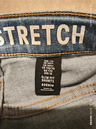 Bermuda vaquera de H&M, estilo slim fit. - Talla EUR 170 / US 14Y+ / CA 14A+ / CN 170/75 / MX 170 / AUS 15. - Confeccionada en denim. - Fabricada en Bangladesh.