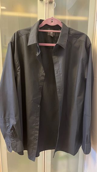 Camisa de vestir H&M en color negro y corte slim fit. - Diseño de manga larga. - Cuello clásico. - Cierre de botones.