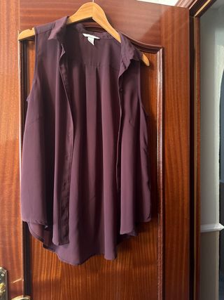 Blusa de H&M sin mangas, con un bonito color morado. - Diseño con cuello - Cierre de botones - Corte holgado