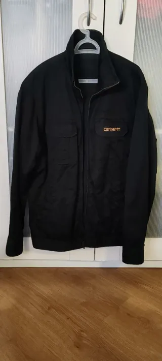 Chaqueta de trabajo de la marca h&M en color negro. Diseño clásico con cierre de cremallera. El logo Carhartt es un añadido - Dos bolsillos frontales con solapa. - Bolsillo en el pecho con logo. - Cuello alto.