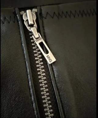 Falda de piel negra de la marca Mango. Diseño moderno con cremallera. - Material: Piel. - Cierre: Cremallera.