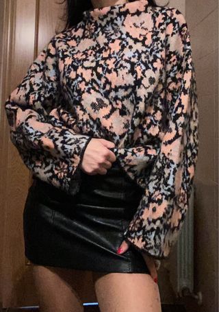 Jersey de Zara con un estampado floral muy bonito. Es suave y cálido! - Tejido con un 5% de lana. - Mangas anchas y acampanadas. - Diseño multicolor con tonos rosas, negros y azules. 🔅Largo delantero 46cm. 🔅Largo trasero 52cm. 🔅Axila 57cm.