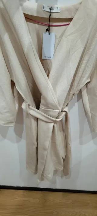 Gabardina elegante de Mango, con un acabado satinado que le da un toque especial, precio en tienda 199€ - Diseño clásico con solapas. - Cinturón para ajustar a la cintura. - Puños con trabillas.