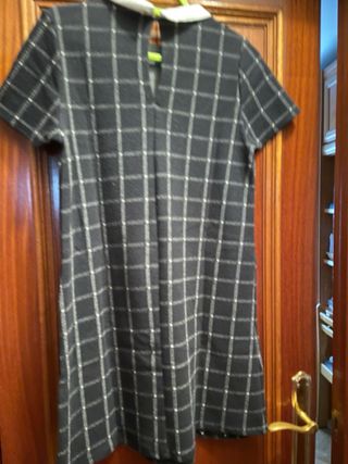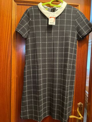 Precioso vestido de la marca Mango, con un diseño de cuadros en blanco y negro. Ideal para cualquier ocasión. - Cuello blanco - Manga corta - Largo hasta la rodilla