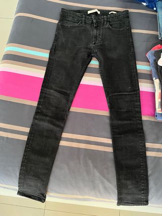 Vaqueros pitillo de Mango Man en color negro y gris. Un básico para cualquier armario. - Corte ajustado. - Diseño de cinco bolsillos. - Cierre de cremallera y botón.