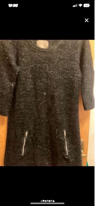 Vestido de manga larga con un bonito estampado geométrico.en la manga tiene un pequeño elástico k realza la manga.es un vestido k favorece y hace buena figura.queda precioso puesto,lo vendo pk he engordado y no me vale.puesto muy poco,solo fiestas. - Diseño con cuello redondo. - Mangas largas. - Largo hasta la rodilla.