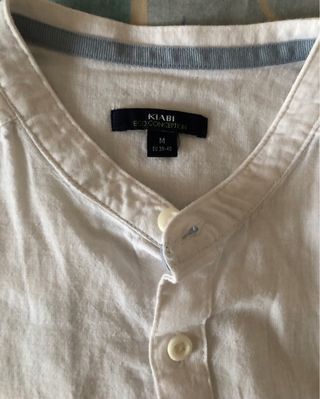 Camisa de manga corta con cuello mao. - Cierre de botones. - Bolsillo en el pecho.