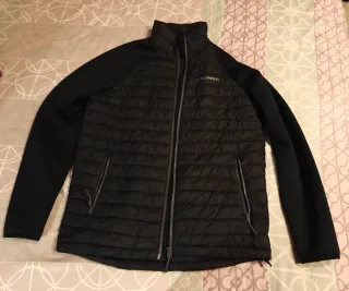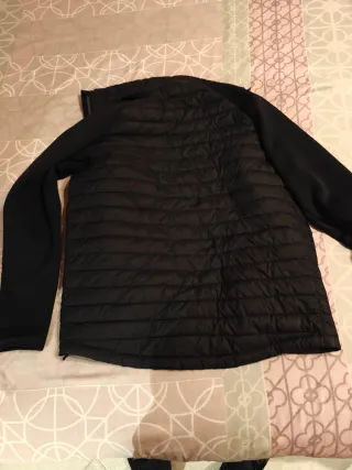 Chaqueta Trangoworld de color negro y talla M. Diseño moderno y funcional. Prácticamente nueva. - Mangas de tejido elástico. - Cuerpo acolchado. - Cremallera frontal completa. - Bolsillos laterales con cremallera.