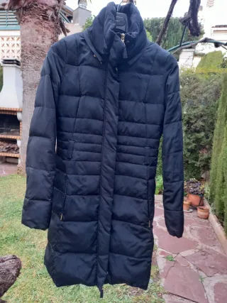 Elegante abrigo de Mango con un diseño texturizado y cremallera frontal.Medidas: Ancho en hombros - 38cm.Entre axilas - 47cm.Largo - 93cm.Manga - 60cm.Composición - 20% lana de oveja,25% poliéster,50% acrílico.La parte de arriba y la parte de abajo no se separan.Poco usado.Envío el mismo día y bien empaquetado. - Textura geométrica. - Cremallera dorada. - Forro interior.