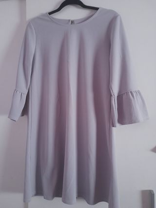 Vestido gris con mangas acampanadas
