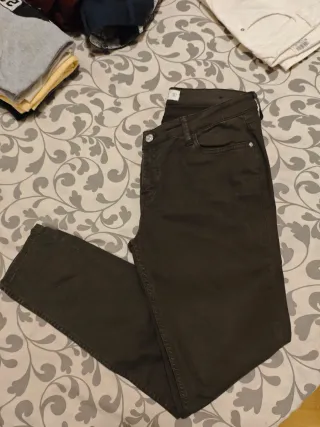 Vaqueros de corte moderno en un llamativo color verde oscuro. - Diseño de cinco bolsillos. - Cierre de cremallera y botón. - Costuras reforzadas.
