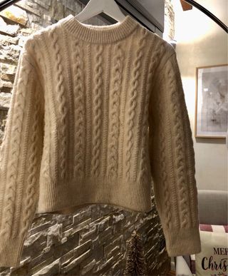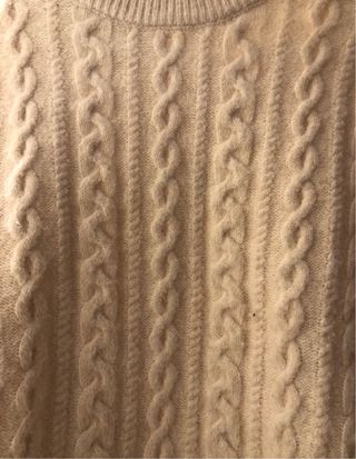 Jersey de Mango con diseño de trenzas. - Cuello redondo. - Manga larga. - Tejido suave y cálido. - Corto