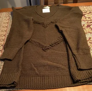 Jersey de punto marrón con un diseño de corazón en el pecho. Aún conserva la etiqueta. - Diseño de corazón con textura. - Cuello en V. - Manga larga.
