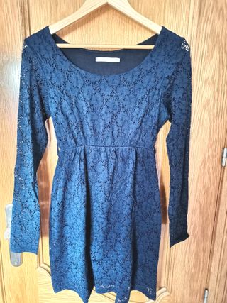 Vestido de manga larga con un diseño elástico. - Tejido con textura de encaje. - Cintura marcada. - Mangas largas con detalle. - Largo hasta la rodilla.