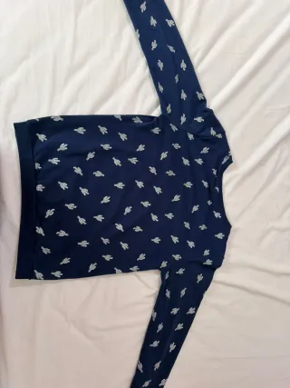 Camiseta de manga larga con un diseño moderno y llamativo. - Estampado gráfico en la parte delantera. - Cuello tipo polo con botones. - Bolsillo en la parte frontal.