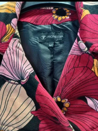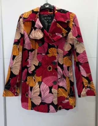 Elegante blazer con un llamativo estampado floral. Muy bien cuidado, cómo nuevo. Talla M-38 Pecho 44 cm×2 Largo 75 cm - Diseño de doble botonadura. - Cuello solapa clásico. - Manga larga.