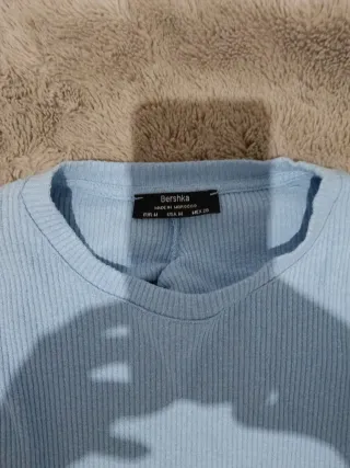 Camiseta de Bershka con un diseño moderno y favorecedor, con nudo delantero. Está usado. - Tejido acanalado. - Manga larga. - Corte cropped