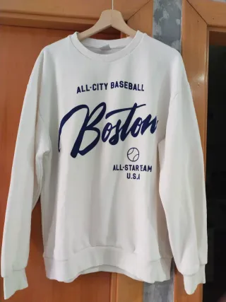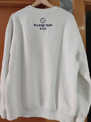 Sudadera blanca con estampado de béisbol. - Diseño All-City Baseball Boston. - Detalle de pelota de béisbol con All-Star Team U.S.A.. - Cuello redondo y manga larga.