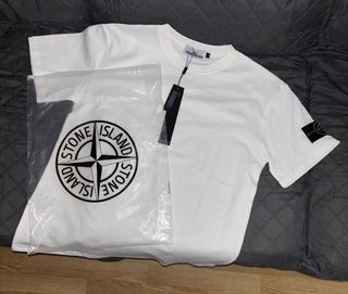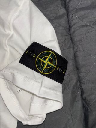 Camiseta de la marca Stone Island en color blanco. Presenta el distintivo parche de la marca en la manga. - Parche de la marca en la manga.