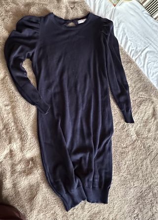 Vestido de punto azul de Zara con mangas abullonadas y detalle en la espalda. - Manga larga abullonada. - Cuello redondo. - Abertura con botón en la nuca.