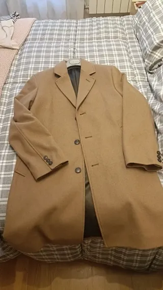 Abrigo de caballero de Mango, en color beige. Ha sido usado una sola vez. - Cierre de botones. - Puños con botones. - Bolsillos frontales.