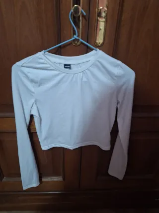 Top blanco de manga larga de la marca SHEIN. Es una prenda versátil y cómoda. - Diseño de cuello redondo. - Manga larga. - Corte crop.