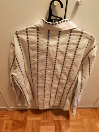 Nueva con etiquetas. • Medidas: de sisa a sisa 50 cm. Ancho 37 cm. Largo 66 cm. • 55% algodón, 45% poliéster. • Color: Granate / Blanco. • Manga Larga • Cierre con Botones. • Puños con 3 botones.
