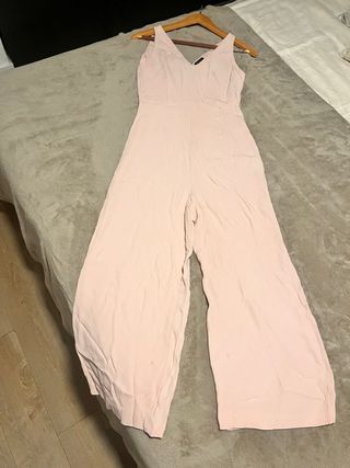 Mono largo de Massimo Dutti en color rosa. Diseño fluido y elegante. - Corte ancho en las piernas. - Escote en V. - Tirantes finos.