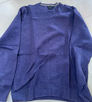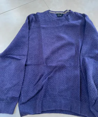 Fabuloso Jersey de punto con textura para caballero en un precioso color violeta. Muy favorecedor. Perfecto Estado. 💞💖💗 Medidas: Axila a Axila: 51cm. Largo: 70cm. - Cuello redondo. - Manga larga. - Tejido de lana suave y confortable.