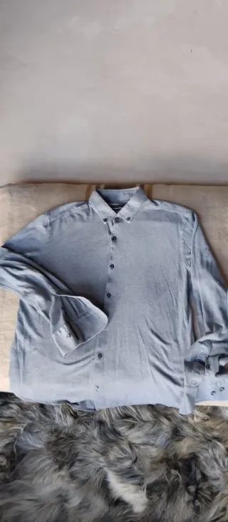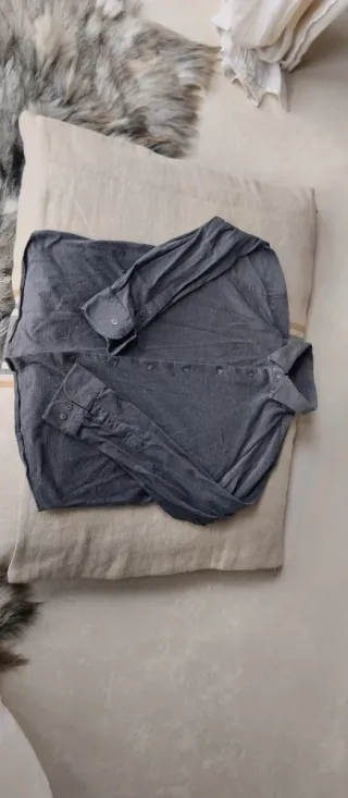 Camisa de manga larga de Massimo Dutti en color gris. Muy bonita, poco puesta. - Cuello camisero. - Cierre de botones. - Puños abotonados.