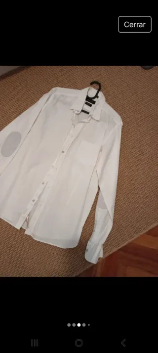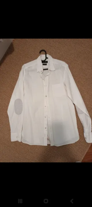 Camisa de manga larga de la marca Massimo Dutti. - Color blanco. - Cuello camisero. - Cierre de botones. - Bolsillo en el pecho. - Parches en los codos.