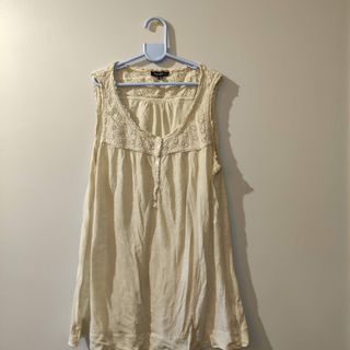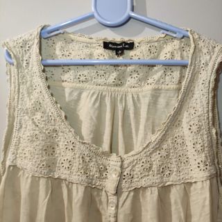 Camiseta sin mangas de Massimo Dutti en color beige con un delicado detalle de brocado en el escote y los tirantes. Tiene un agujerito en la parte inferior. (Foto 5) - Escote redondo con detalle de encaje. - Cierre de botones en la parte delantera. - Tejido ligero y vaporoso.
