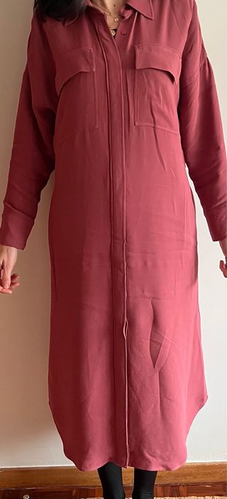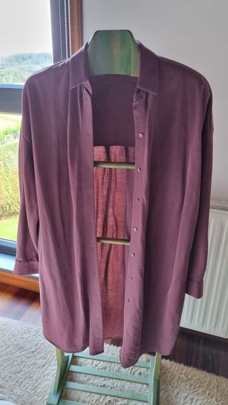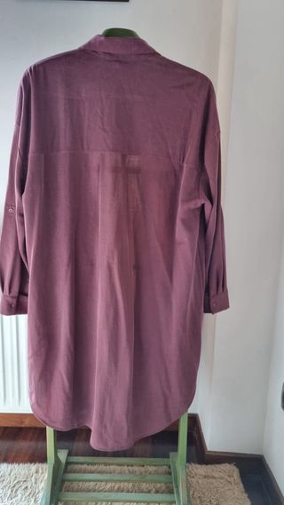 Sobrecamisa de Massimo Dutti en color vino. Sirve también como vestido. Viscosa y poliamida. - Diseño de corte recto. - Cuello camisero. - Cierre de botones. - Manga larga. Talla S Amplia, vale como M.