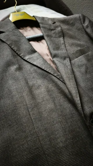 Traje de vestir tiene una pequeña tara al lado de la solapa por detrás