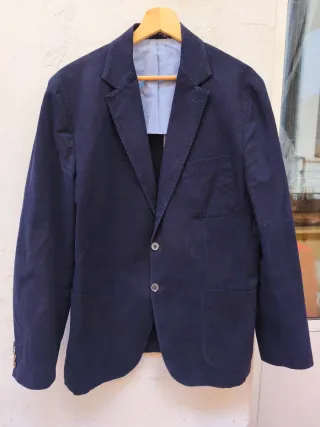 Americana de vestir en color azul marino. Un clásico para cualquier armario. - Cierre de dos botones. - Bolsillos frontales. - Cuello solapa. En muy buen estado, sin ningún detalle.