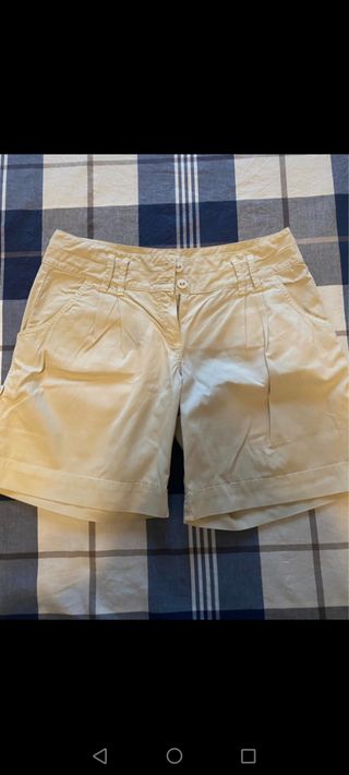 Pantalones cortos de Massimo Dutti en color beige, ideales para el verano. - Tienen un diseño clásico con bolsillos. - Están en muy buen estado.