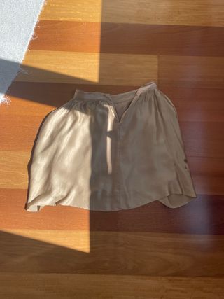 Elegante falda corta de Massimo Dutti en color beige. Su diseño fluido y ligero la hace perfecta para cualquier ocasión. - Tejido satinado. - Bolsillos laterales. - Cintura con fruncido.