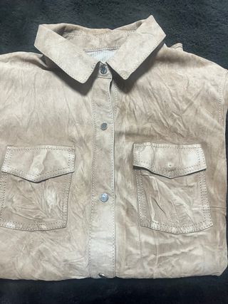 Camisa de ante en color camel, con un diseño clásico y elegante. - Material: Ante - Color: Camel - Cierre de botones metálicos - Dos bolsillos en el pecho con solapa