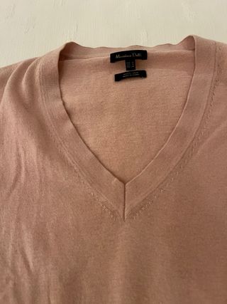 Jersey marca Massimo Dutti de punto en color granate claro ideal para un estilo casual. Composición Algodón - Cashmere. Cómodo, cálido y fácil lavado. Tengo más modelos en mi perfil, se puede hacer lote y precio. - Cuello en V. - Parches de ante en los codos. - Puños y bajo acanalados.