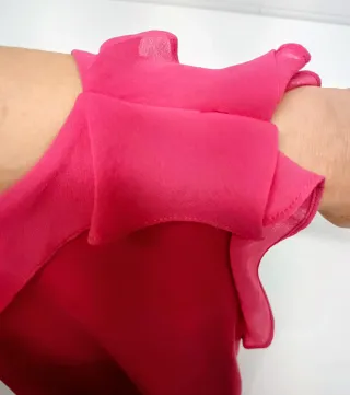 Camiseta de Massimo Dutti en color fucsia. Presenta un diseño con volantes en los hombros y un cuello redondo co. Un ligero volante - Cuello redondo con detalle. - Tejido ligero con muy buena caída y cierta elasticidad. Un bonito detalle en los hombros Ahorra comprando en lote