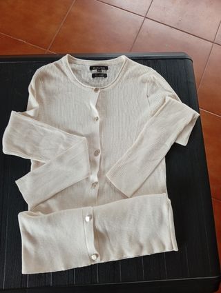 Preciosa chaqueta de punto de Mango en color beige. Es de manga larga y tiene un diseño de canalé. Está en perfecto estado. - Talla S / 36 / 8 - Cierre de botones - Tejido suave