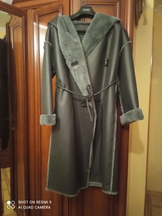 Abrigo largo de Massimo Dutti con capucha y cinturón de piel y pelusita en el interior, muy suave. Nuevo sin estrenar, se compró para un evento y no se pudo ir ( tiene 2 años guardados) en perfectas condiciones Solo se entrega en maño - Capucha forrada de pelo sintético. - Puños y bajo del abrigo con detalle de pelo sintético. - Cinturón a tono para ajustar la cintura.