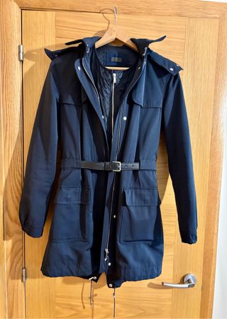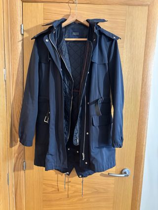 Parka de Massimo Dutti en color azul marino. Incluye cinturón de piel. Chaleco interior acolchado extraible. - Diseño con capucha con pelo extraible. - Cierre de cremallera. - Bolsillos frontales.