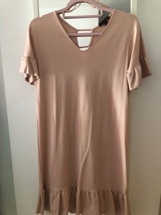 Bonito vestido de algodón suave, un poco elástico y fresco. Color nude. Queda un poco por encima de la rodilla, muy mono y favorecedor. Envío a cuenta del comprador