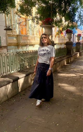 Elegante falda larga de Massimo Dutti. - Diseño fluido y moderno. - Cintura con detalle. - Tejido ligero y cómodo.