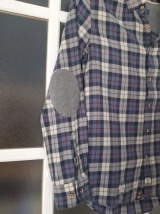 Camisa de cuadros de Massimo Dutti, ideal para el día a día. - Diseño de cuadros en tonos azules y beige. - Puños abotonados. - Parches en los codos. Tela gordita tipo franela