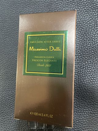 Emulsión After Shave de Massimo Dutti con fragancia clásica. - Contenido: 100 ml (3.4 FL OZ). - Presentación: Frasco con caja. - Aroma: Frescor Elegante.