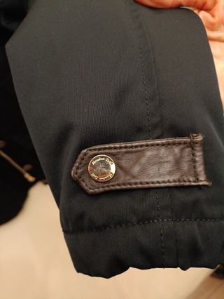 Chaqueta acolchada con capucha. - Cierre de cremallera y botones a presión. - Bolsillos con solapa en el pecho. - Bolsillos laterales con cremallera. - Detalle de tiradores dorados en las cremalleras.
